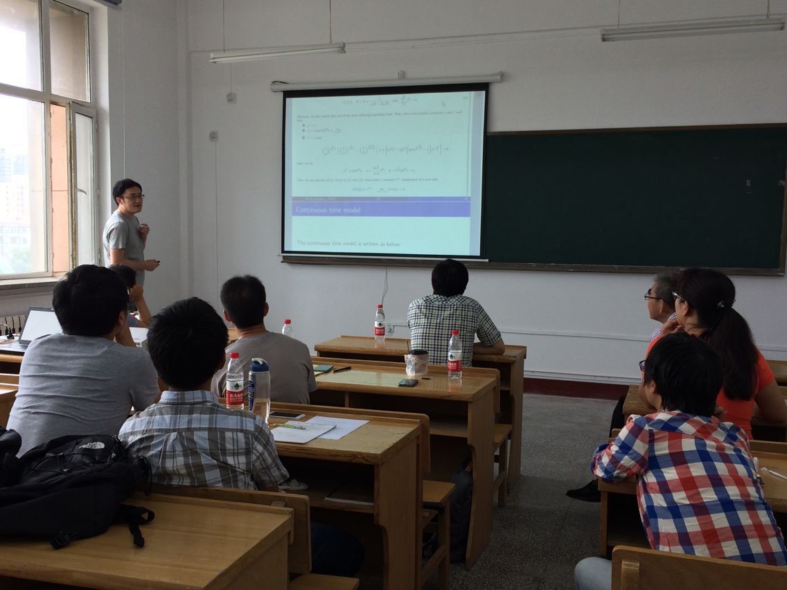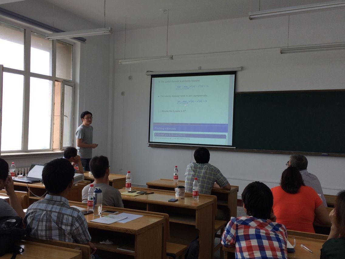 受yl8cc永利线路检测中心数学系和数学研究院的邀请,首尔国立大学数学科学系张雄韬博士于2017年6月21日在格物楼522报告厅做了题为“Uniform-in-time transition from discrete dynamics to continuous dynamics in the Cucker-Smale flocking”的学术报告,数学系相关专业的十余位师生参加学术报告并展开了讨论。