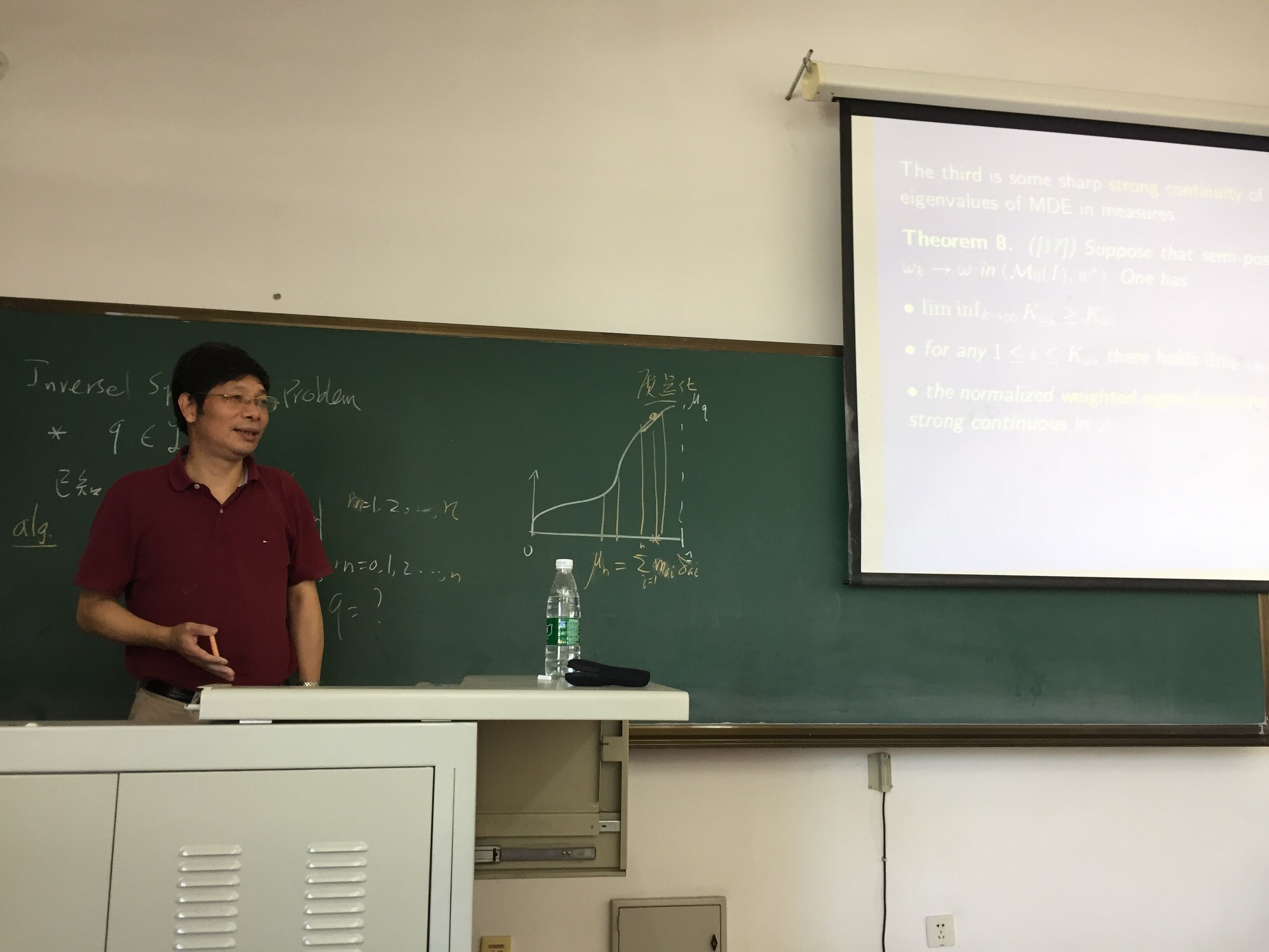 应数学系蒋卫华教授和王春程副教授的邀请,清华大学数学科学系章梅荣教授近日访问了公司,并于7月11日11:00-12:00在正心楼308作了“关于测度微分方程的解与特征值”的报告。测度微分方程可以理解为以测度为系数的微分方程,可以描述不连续、非光滑跳跃等物理形态,是通常的常微分方程或者偏微分方程的一种极限情形,在应用科学中有很多应用。20余位师生聆听了章教授的报告,并进行了热烈的讨论。