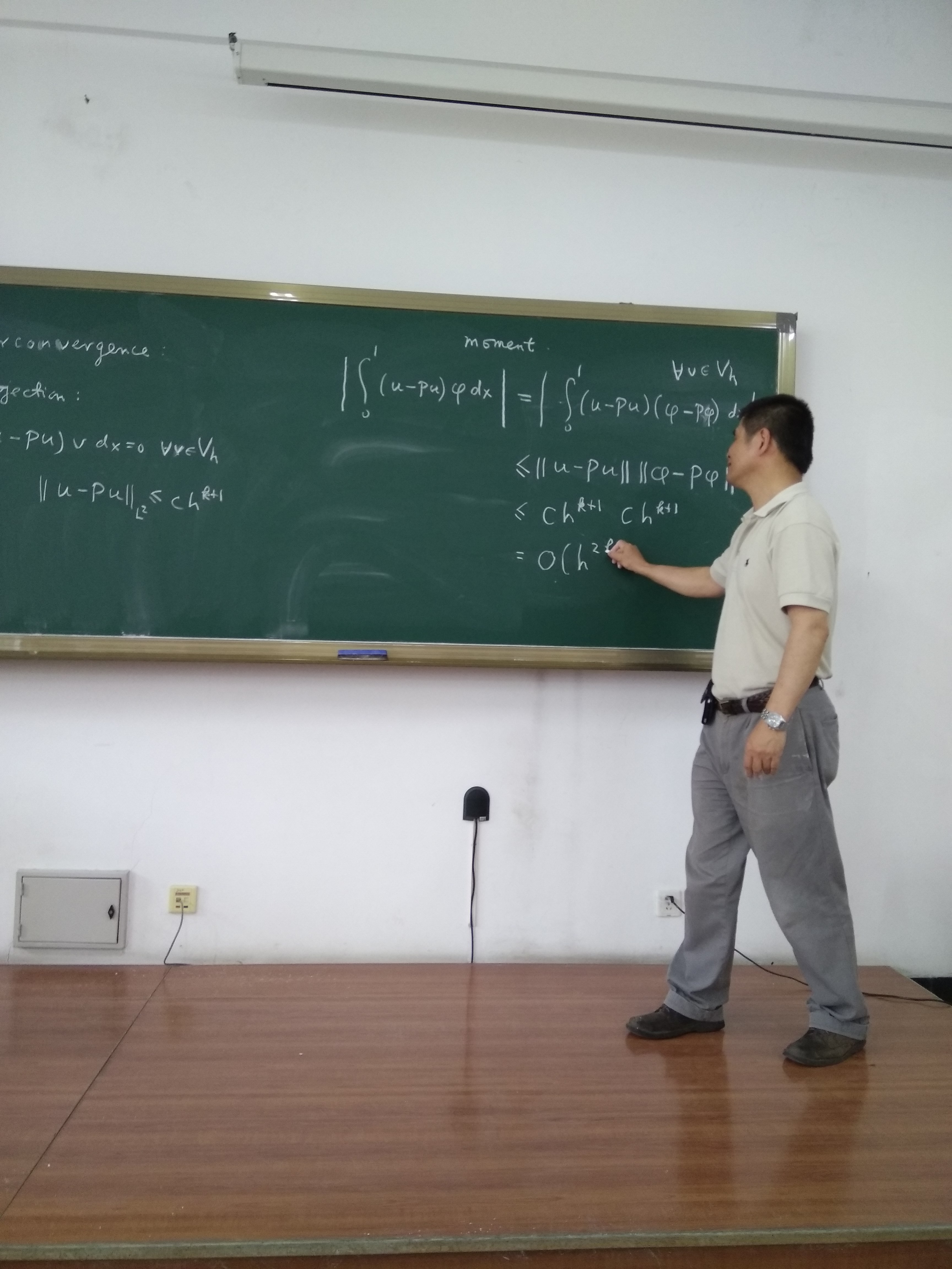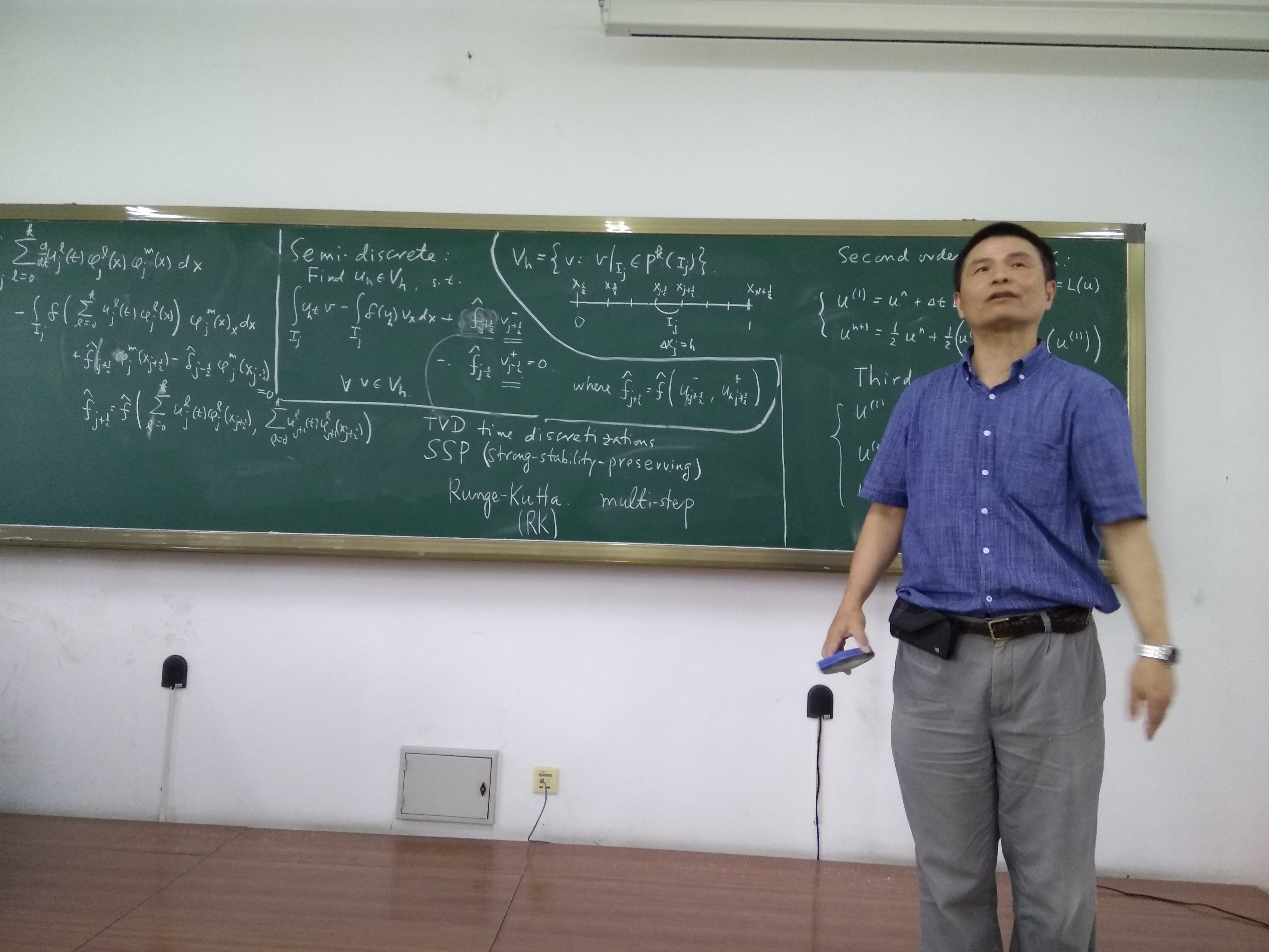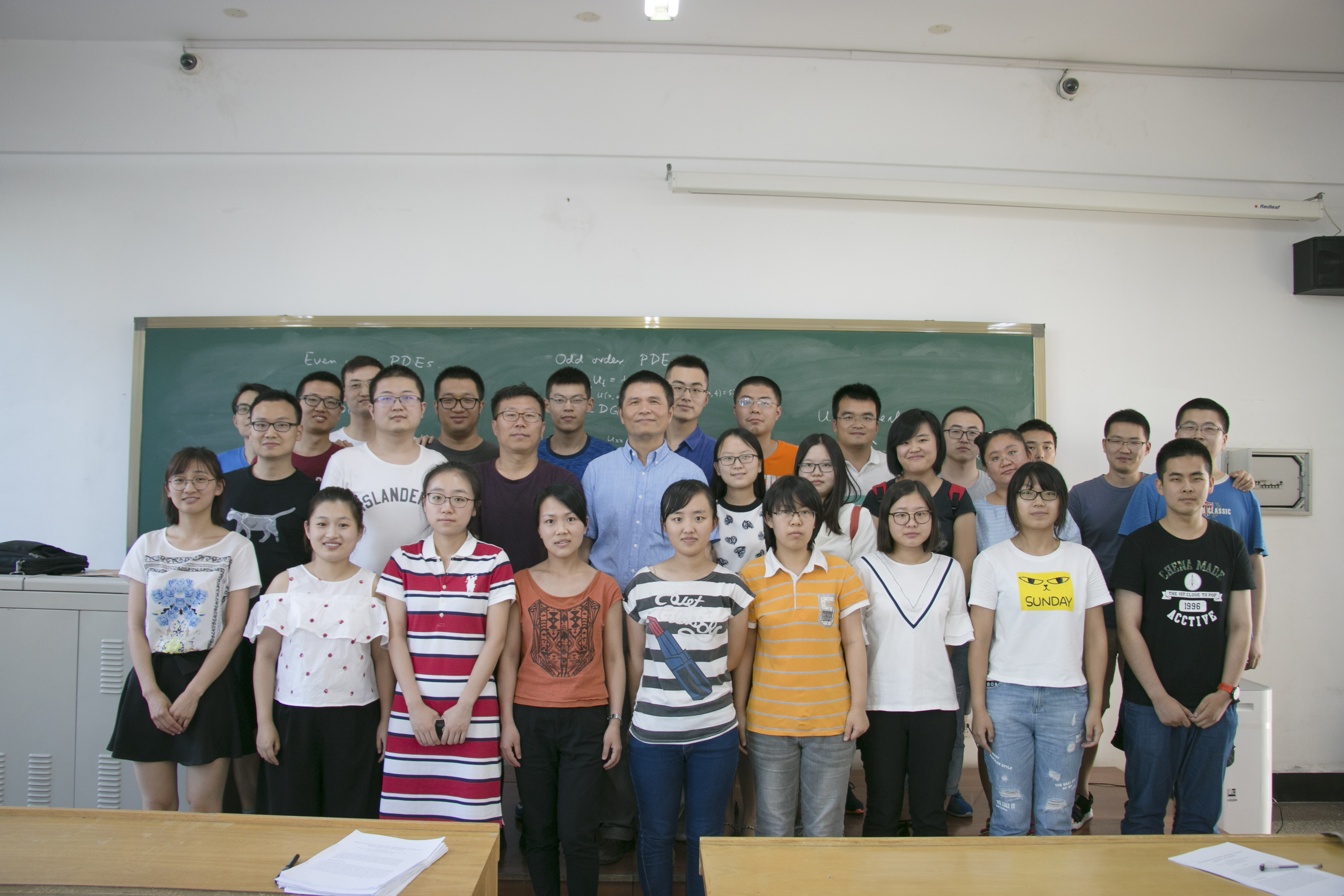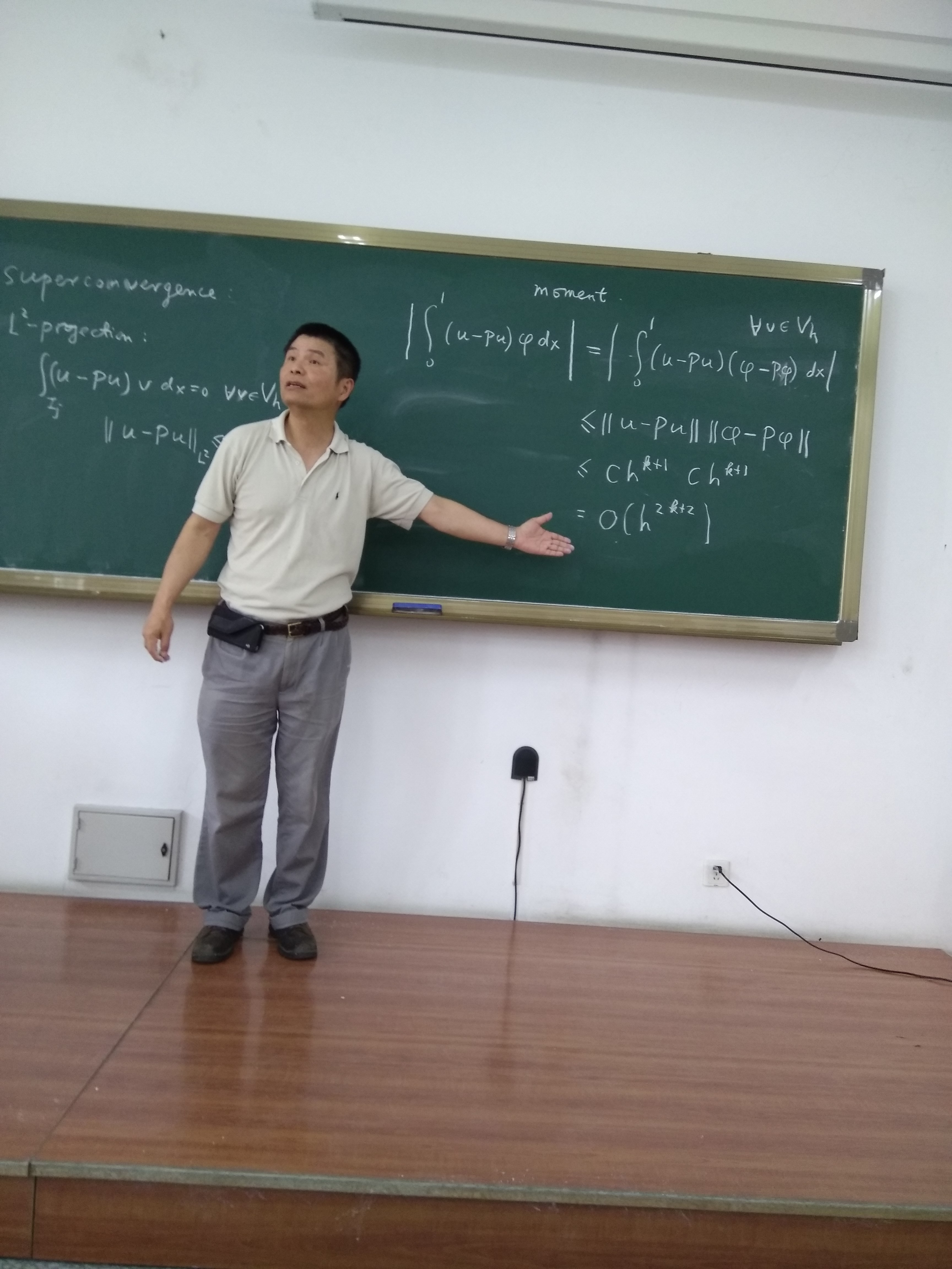 受yl8cc永利线路检测中心本科生院及国际合作处资助,应数学系邀请,美国布朗大学舒其望教授于2017年7月16日至22日访问了公司,并讲授了名为“Discontinuous Galerkin methods for convection-dominated problems”的短期前沿课程。本课程共16学时(7月17号、18号、20号和21号下午的5-8节),主要介绍了求解对流占优偏微分方程的间断有限元方法,重点讨论了间断有限元格式的数值流通量选取、单元熵不等式与L2稳定性、最优收敛性以及高阶偏微分方程局部间断有限元方法的构造与分析等;共吸引了yl8cc永利线路检测中心数学系及其它高校的师生共60余人前来聆听,并进行了热烈的讨论。通过本门课程的讲授,促进了同学们对高阶精度算法尤其是间断有限元方法的理解与掌握,培养了同学们解决实际工程科学计算问题的能力。