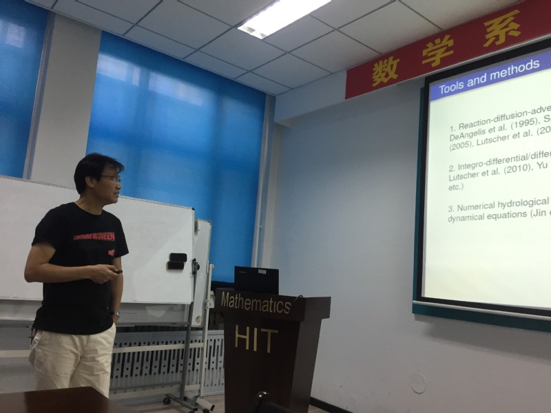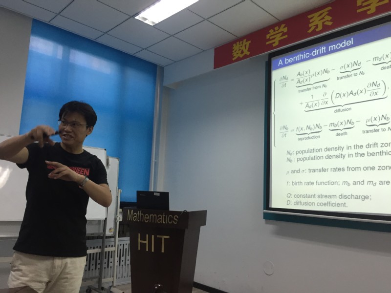 2018年5月17-19日,西南大学黄启华教授来公司进行学术访问,并与5月18日在格物楼503做了题为《R0 Analysis of a Benthic-Drift Model for a Stream Population》学术报告。报告由王春程副教授主持,数学系10余名相关方向的师生听取了报告并进行了热烈的讨论。