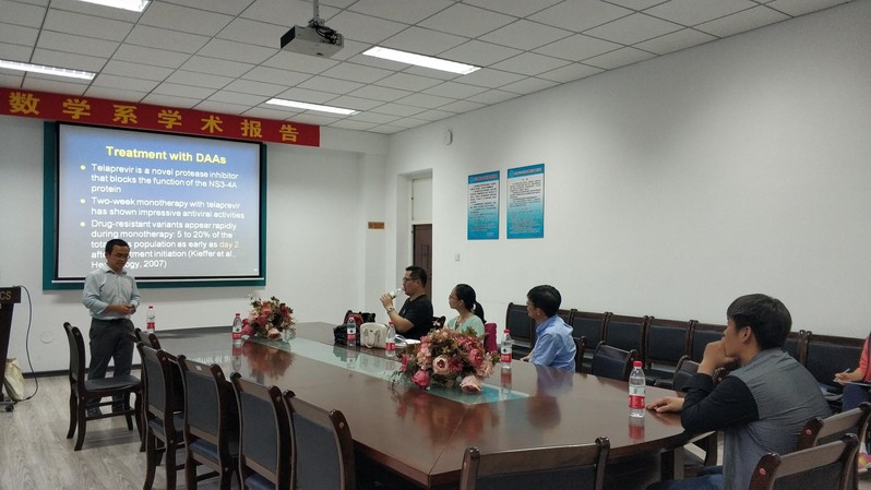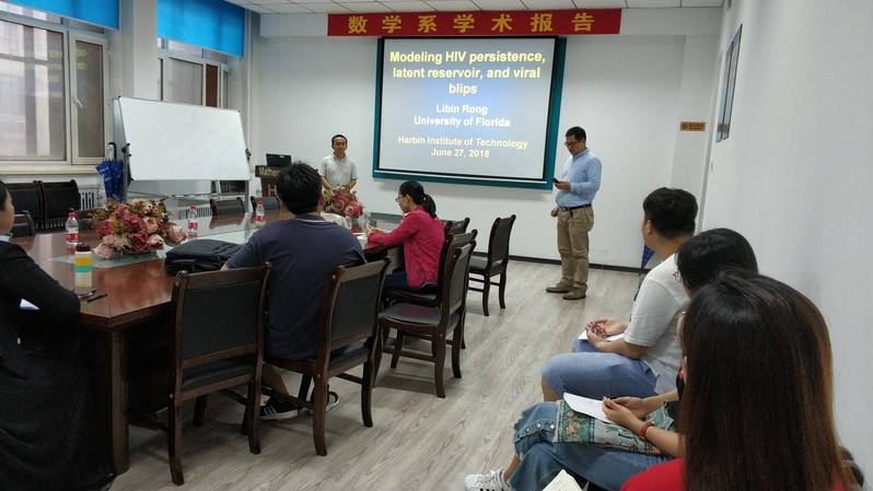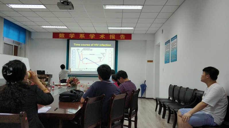 受学校国际合作与交流基金资助,应数学系刘胜强教授邀请,美国佛罗里达大学荣礼彬(Libin Rong)教授于2018年6月26-7月3日来yl8cc永利线路检测中心数学系进行了成功的学术访问,访问期间,荣礼彬教授举行了病毒动力学模型系列专题讲座并与我系师生进行了多次学术交流活动。
