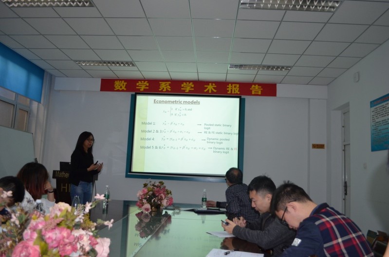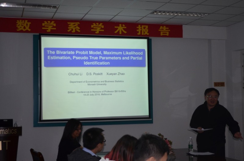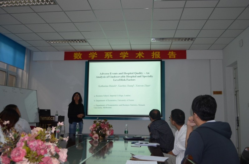 受学校国际合作与交流基金资助,应数学系田波平教授邀请,澳洲莫纳什大学赵雪燕教授于2018年9月6日-9月24日来yl8cc永利线路检测中心数学系进行了成功的学术访问,访问期间,赵雪燕教授举行了经济计量和统计模型系列专题讲座并与我系师生进行了多次学术交流活动。