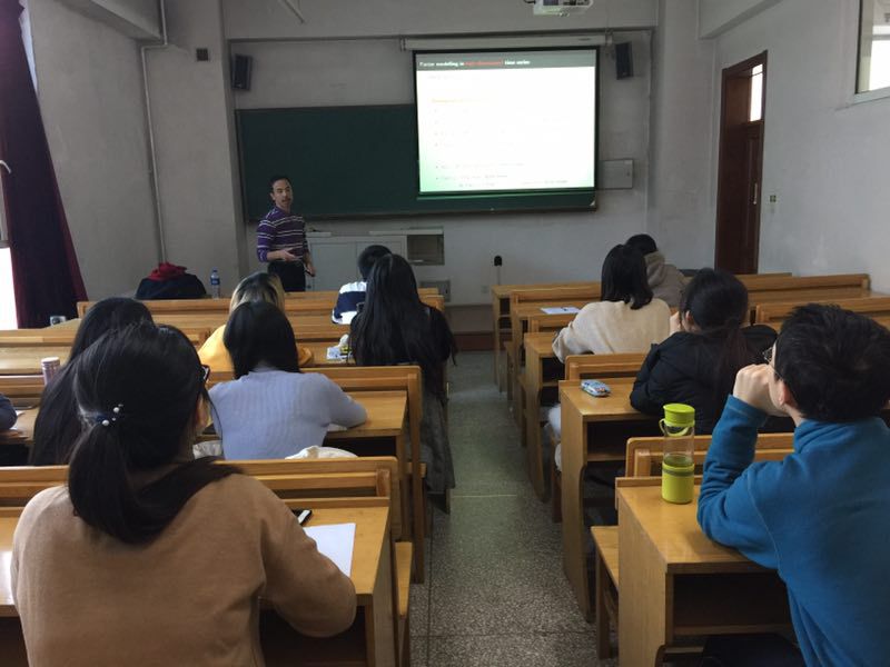 由国际合作处国际化基金资助,应数学系陈佳奇老师的邀请,香港大学姚建峰教授于2018年12月30日至2019年1月3日到公司进行了学术访问。姚建峰教授分别于1日2日上午9:00-10:30和10:30-12:00在格物楼503报告厅,下午14:30-16:00在正心楼215室共做了三场讲座。姚建峰教授的报告内容涉及概率统计学科的前沿方向大维随机矩阵,介绍了该方向的背景、基础理论、相关的统计方法及其应用,重点介绍了大维因子模型的统计推断。报告由陈佳奇老师主持,数学系相关方向的师生参加了报告会并与姚建峰教授进行了热烈的学术交流与讨论。