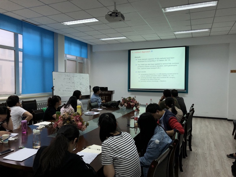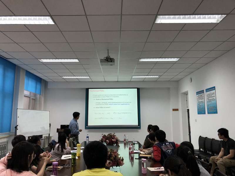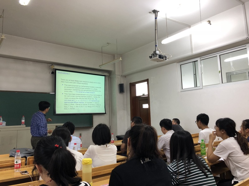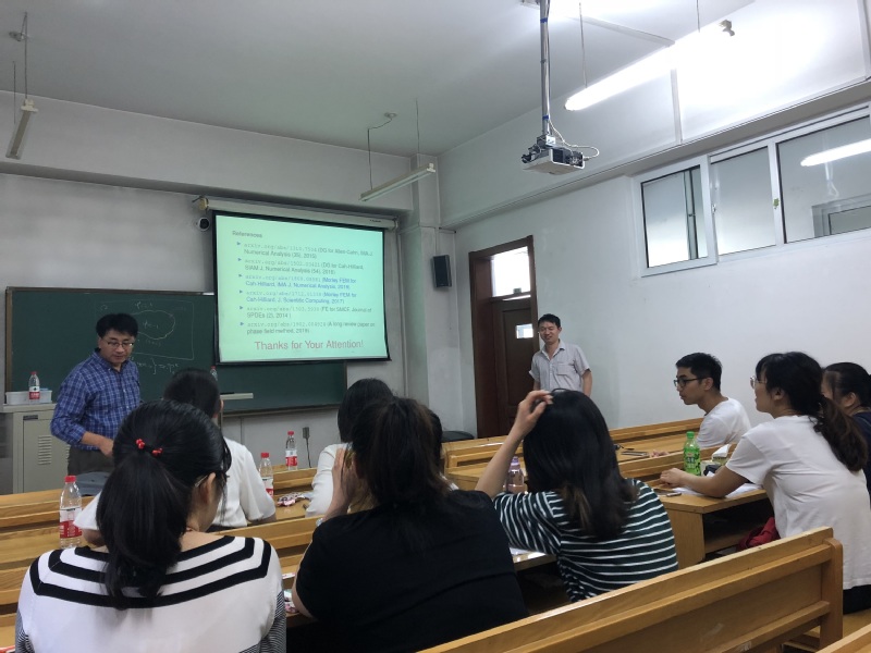 应yl8cc永利线路检测中心张达治副教授邀请,美国田纳西大学应用与计算数学系凤小兵教授于2019年6月30日至7月1日来公司进行学术访问。凤小兵教授于6月30日(周日)13:30—16:30在格物楼503会议室做了两场学术报告。报告内容为凤小兵教授关于线性、非线性偏微分方程及其数值解法和算法研究的综述性报告。凤教授于2019年7月1日(周一)13:30—16:30 在正心318分别做了两场学术报告,报告是凤小兵教授关于向场模型的数值解法的介绍。