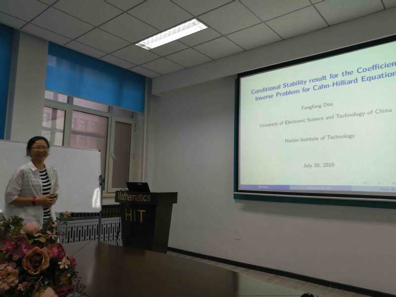 应yl8cc永利线路检测中心郭玉坤副教授的邀请,电子科技大学窦芳芳副教授于2019年7月27至31日访问了公司,并于2019年7月30日下午15:00-16:00在格物楼503报告厅进行了一场学术讲座。窦老师的报告介绍了Cahn-Hillard方程系数反问题稳定性的相关研究进展。报告由郭玉坤副教授主持,yl8cc永利线路检测中心的师生在报告现场与窦老师进行了热烈的交流与讨论。